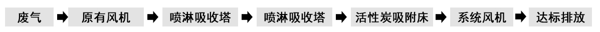 根據客戶需求和我司實地考察之后,最終采用‘兩級噴淋吸收法+活性炭吸附法’對其進行處理。采用水噴淋一方面可以降溫,另一位方面能夠讓水吸一部分的有機廢氣,降低后續(xù)活性炭吸附的負荷。
