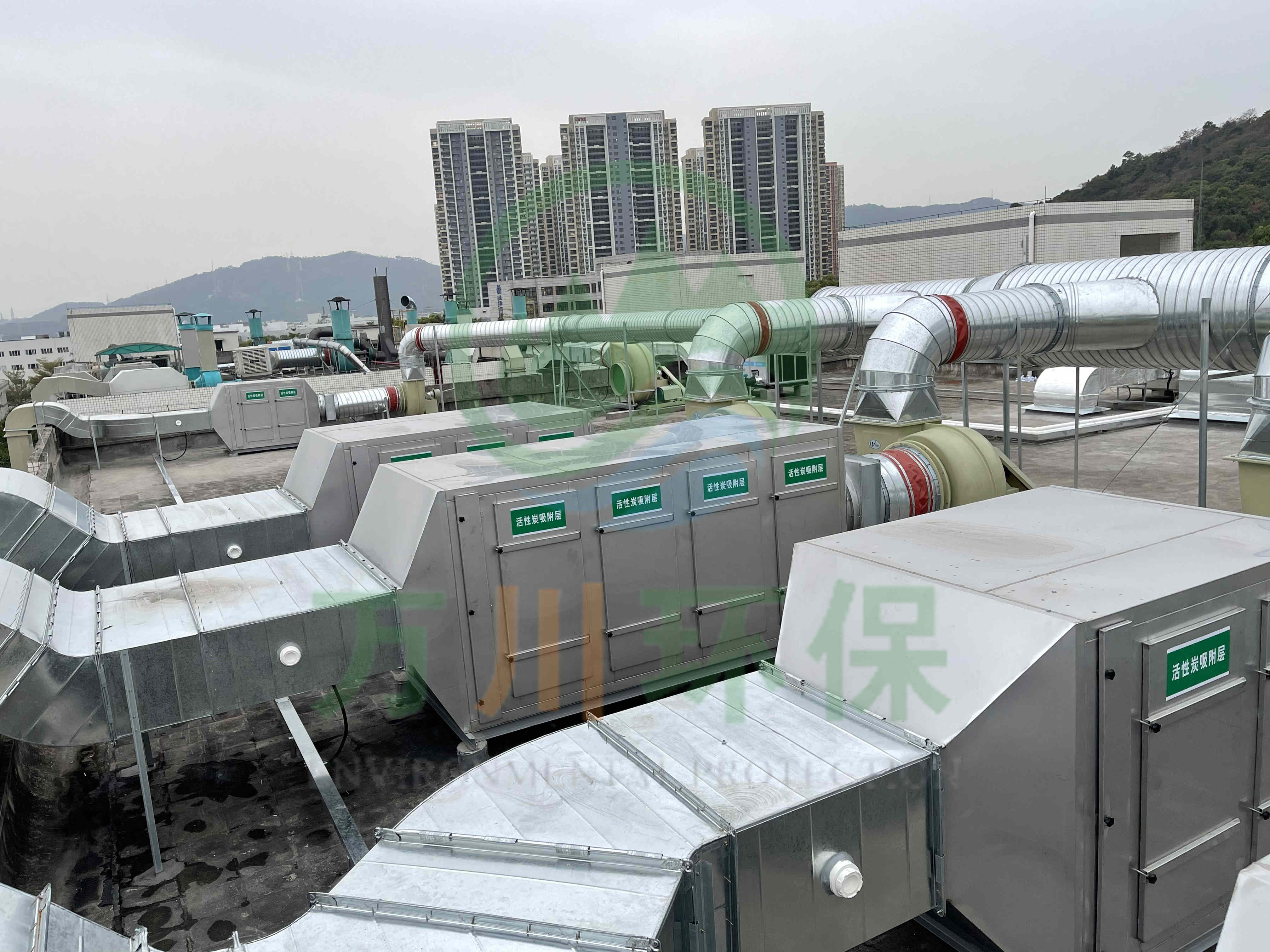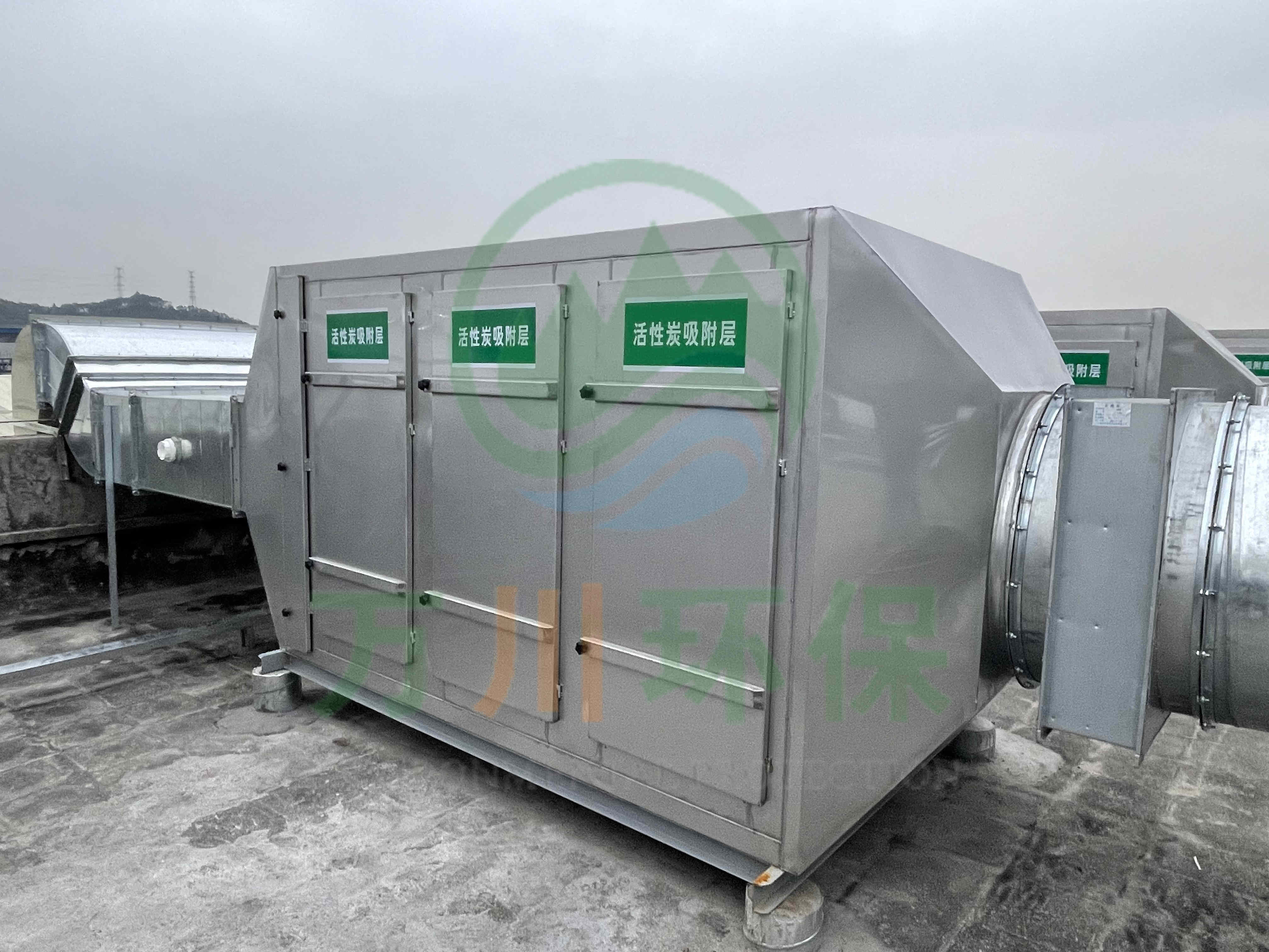 在廢氣處理上選用了活性炭吸附法,我們以活性炭作為吸附介質(zhì),廢氣通過活性炭吸附裝置,活性碳吸附有機(jī)揮發(fā)物,使其與氣體混合物分離,從而使氣體得到凈化。