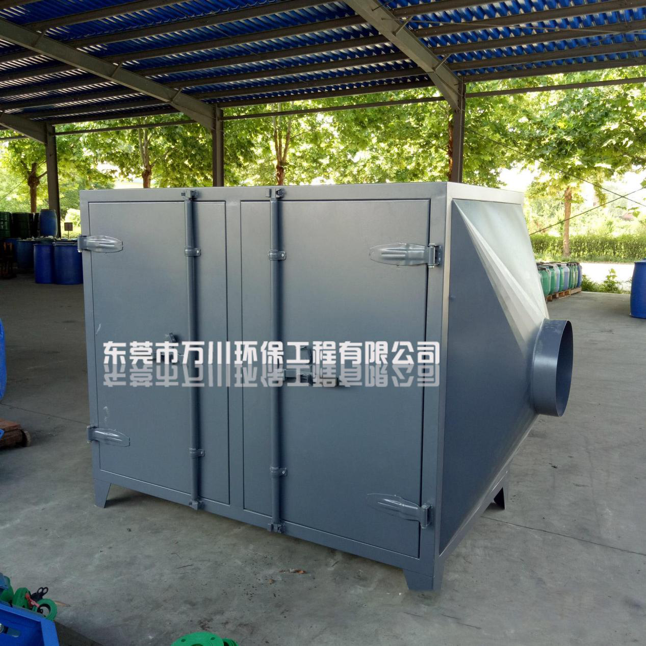 橡膠廢氣從管道進入到設備內,穿過第一層噴淋層,用水沖洗廢氣,再進入到第二、第三層填料層,去除水溶性的粉塵和廢氣,最后進入到活性炭吸附層,利用活性炭的吸附力,吸附有機廢氣,達到凈化的效果。